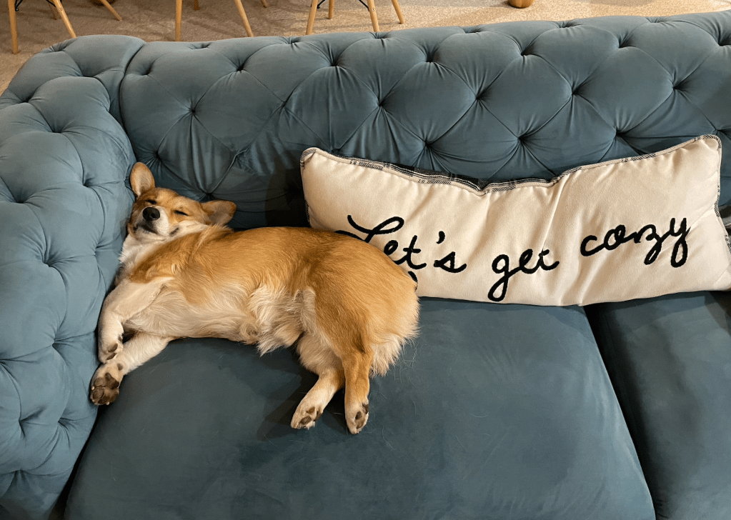 Oscar is a sweet boy who loves his crate and LOVES being cozy.