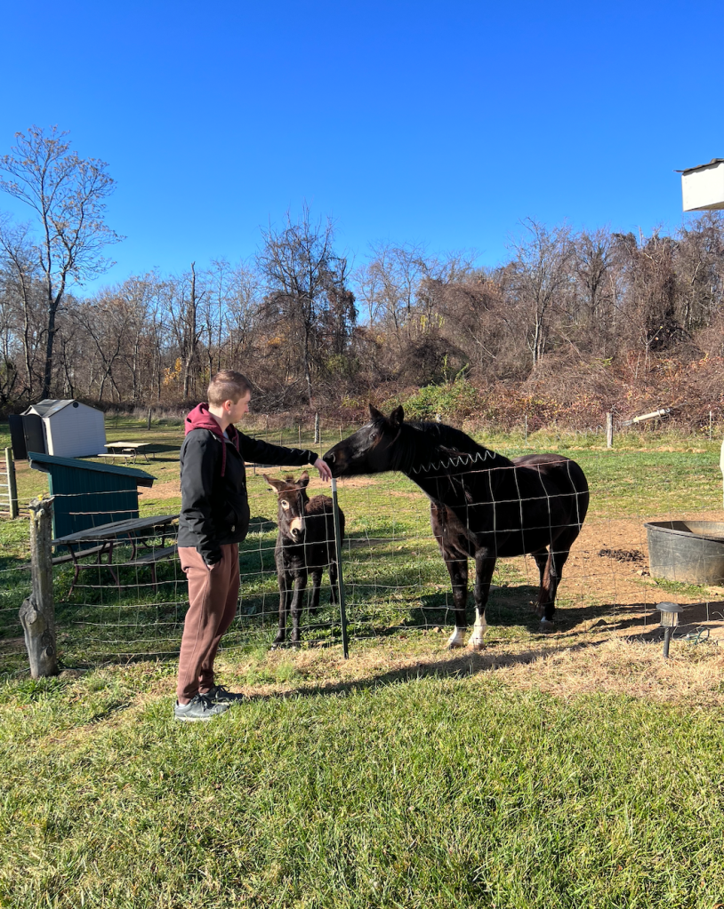 This horse/donkey combo pack enjoys spending time together, despite one being a tiny lil guy (Bartholomew) and the other being an just average sized “still not big enough for rides” boy (Peter).