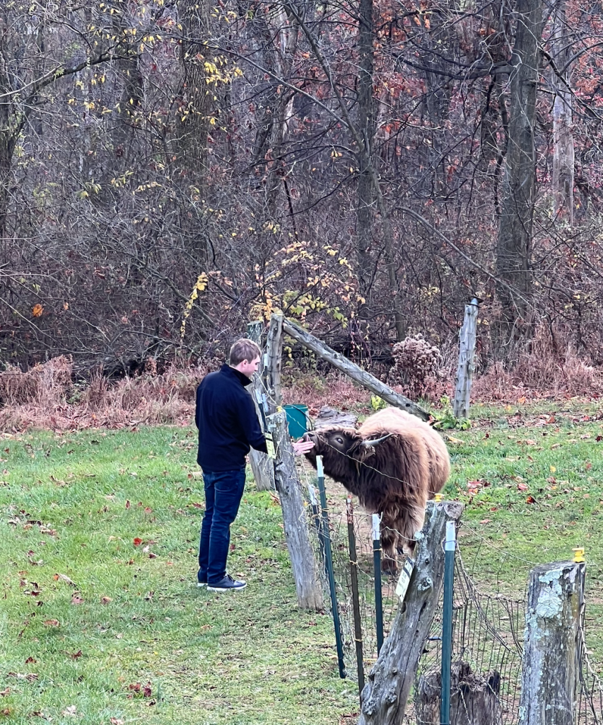 Theo is a cow, but likes to pretend he is many things: sometimes a buffalo, sometimes a horse/donkey like his brothers and sisters, and sometimes (such as in this photo here) a sweet lil baby!